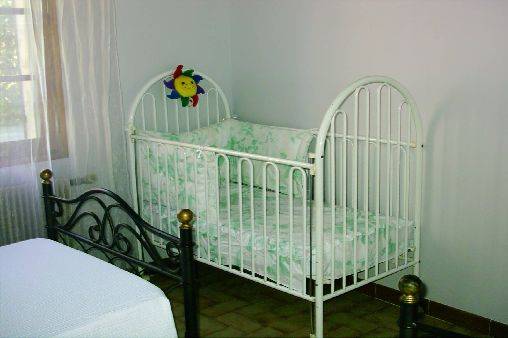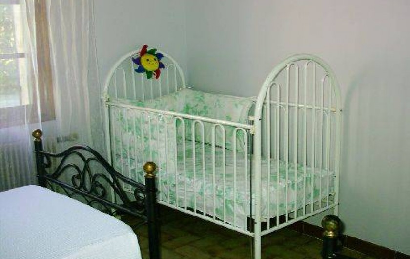 2 chambres (l'une avec un couchage double, une commode et un grand placard de rangement, l'autre avec deux couchages simples et un lit pour bébé)