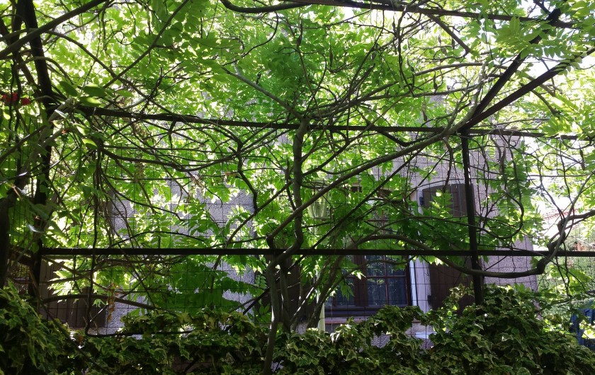 1 tonnelle ombragée pour les repas du midi autour d'un barbecue.