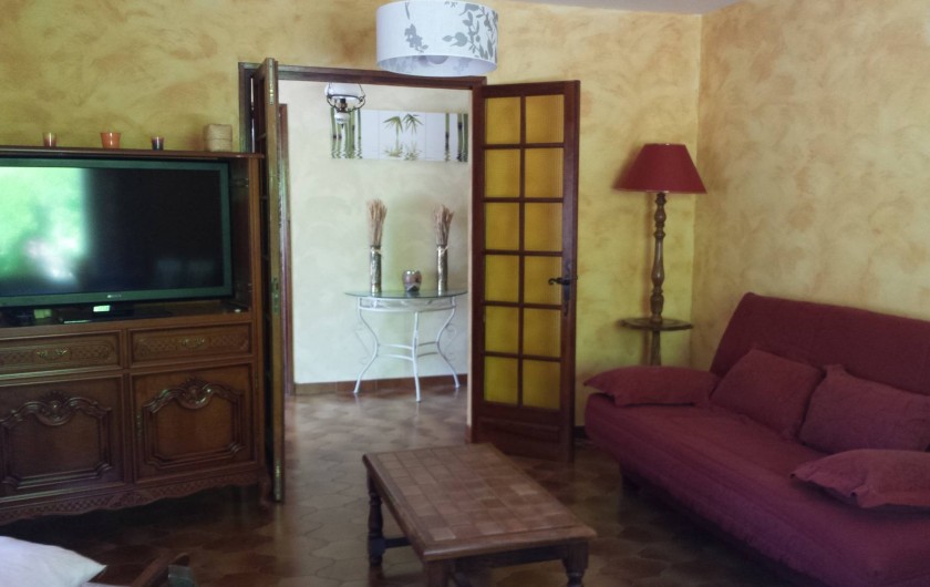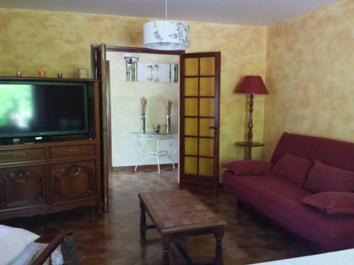 1 salon avec clic clac offrant un vrai couchage pour deux personnes, un téléviseur grand écran, un lecteur DVD, trois fauteuils d'appoint et des jeux de société)