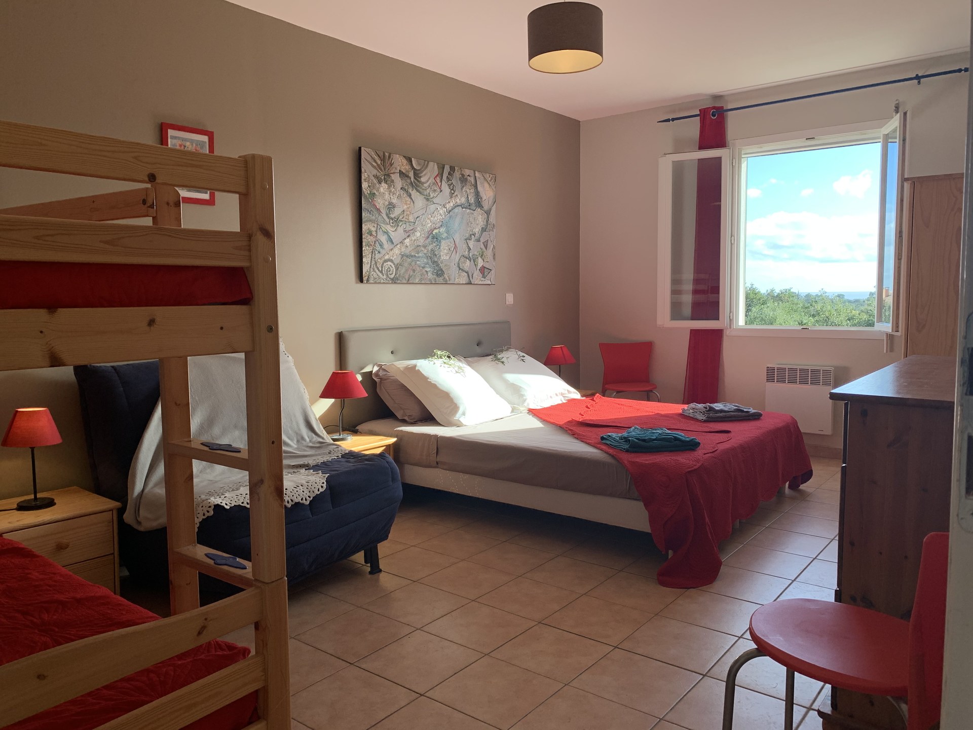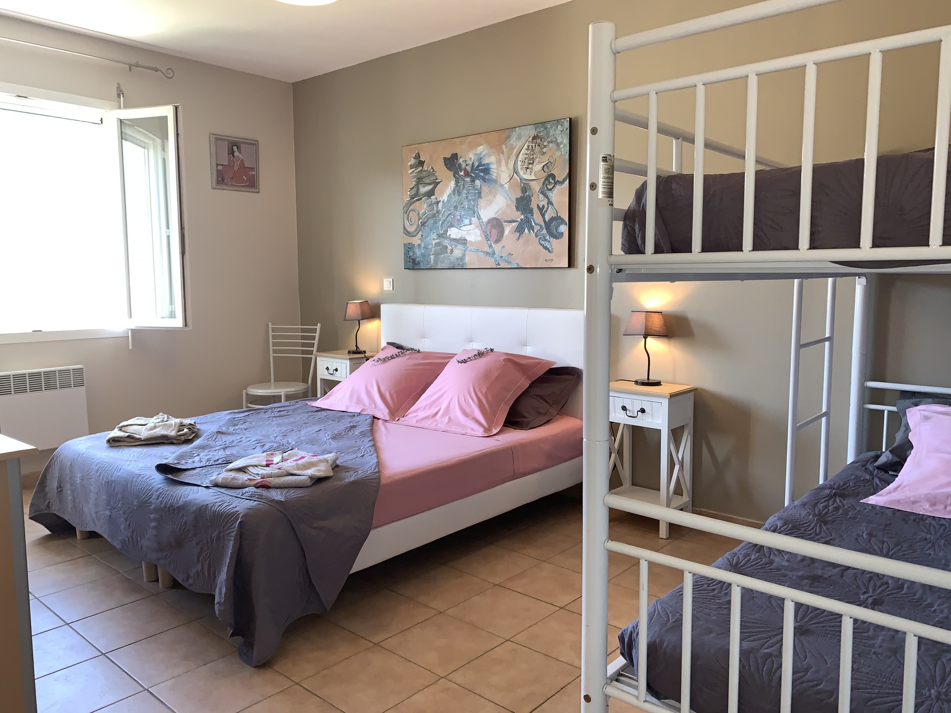 * 2 chambres dans lesquelles se trouvent 1 lit 160x200 cm ( 2 x 80cm) et 2 lits superposés (90x190cm) chacune