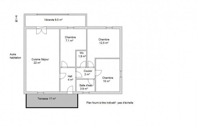 A la campagne, maison de 71 m², mitoyenne à une autre habitation (sans vis à vis), elle se compose ainsi :