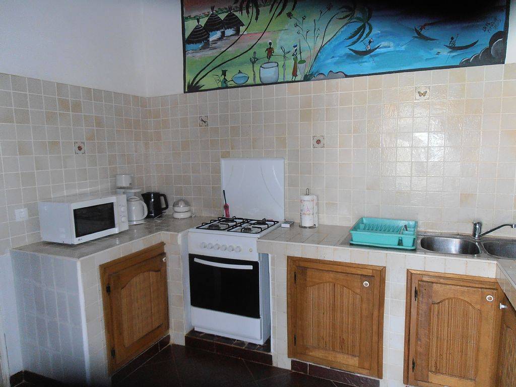 Cuisine et arrière cuisine donnant sur la terrasse tout comme la trés confortable et lumineuse salon- salle à manger climatisée donnant