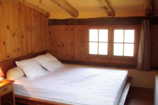 Deux chambres (une grande et une plus petite) équipées de lits doubles (160x200) et la salle d’eau au rez de chaussée. La grande mezzanine accueillant 4 couchages avec la possibilité de rajouter un lit d’appoint peuvent accueillir jusqu’à 9 personnes.