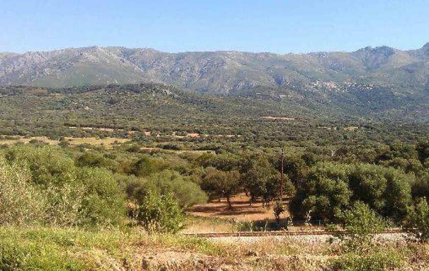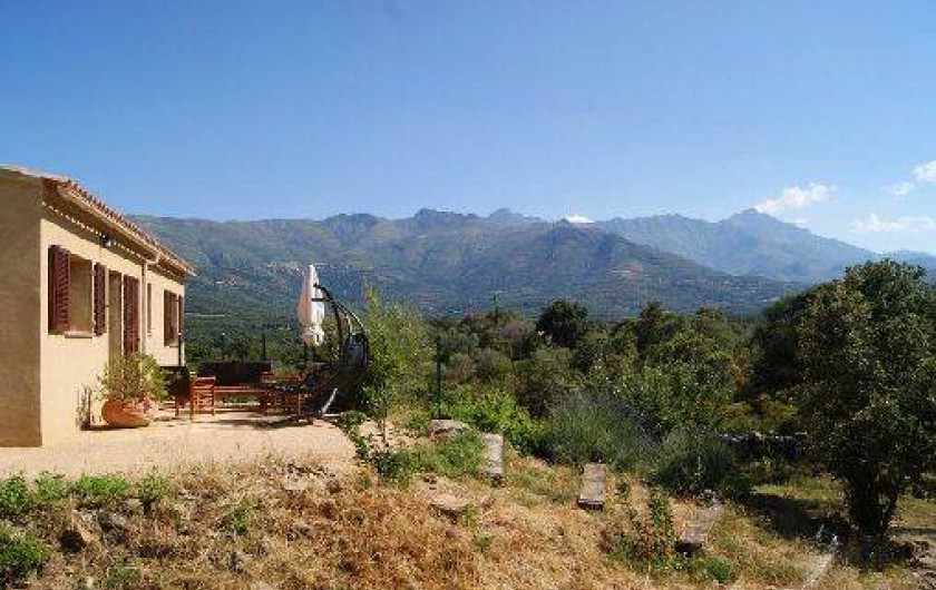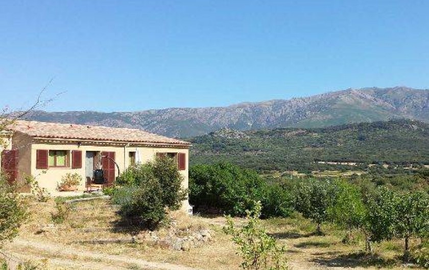A la campagne, maison indépendante de 103 m², à proximité d'un autre gîte. Séjour/cuisine, 3 ch. (1 lit 2 pers. chacune), s.d.b/wc, wc. Climatisation réversible dans le séjour/cuisine, l-linge, l-vaisselle, micro-ondes, réfrigérateur/congélateur, TV, loc. de draps (25€/paire) et de linge de toilette (4€/pers.), option ménage de fin de séjour (forfait : 80€). Terrain de 1000 m², terrasse de 18 m² avec vue sur les montagnes, salons de jardin, barbecue. Parking. Chauffage en sus. Taxe de séjour incluse. Le gîte est classé Gîte de France / Corse N°59671. Le gîte situé à 40 m de la voie ferrée.