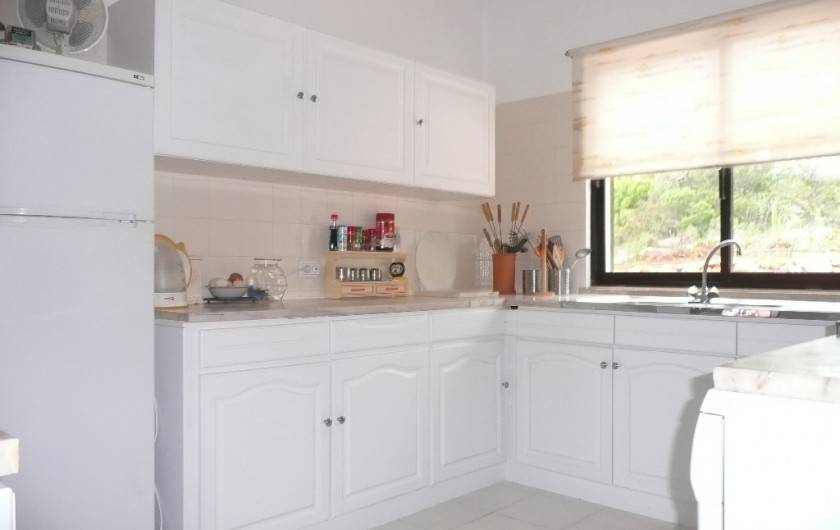 ,'master bedroom' avec un grand lit et salle de bain privee, deuxieme chambre avec deux lits simples, troisieme chambre avec deux lits simples et quatrieme chambre de famille avec un lit double et un lit simple. Il ya une grande salle de douche qui lie ces dernieres deux chambres. En plus il ya une troisieme salle de douche et toilettes. Dans le studio il y a trois lits simples.