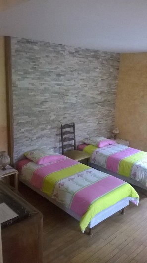 séparés : 1 ch. avec 1 lit 2 pers. ; 1 ch. 1 avec 1 lit 2 pers. ; 1 ch. avec 1 lit 2 pers. et 1 lit 1 pers.. Au 1er étage : 1 ch. avec 1 lit de 2 pers., salle d'eau et wc séparés; 1 ch. familiale avec 1 lit 2 pers. et 4 lits 1 pers., salle d'eau et wc séparés.