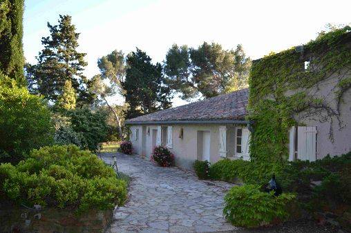 - terrasse et jardin au milieu de pinède, garrigue et vignes