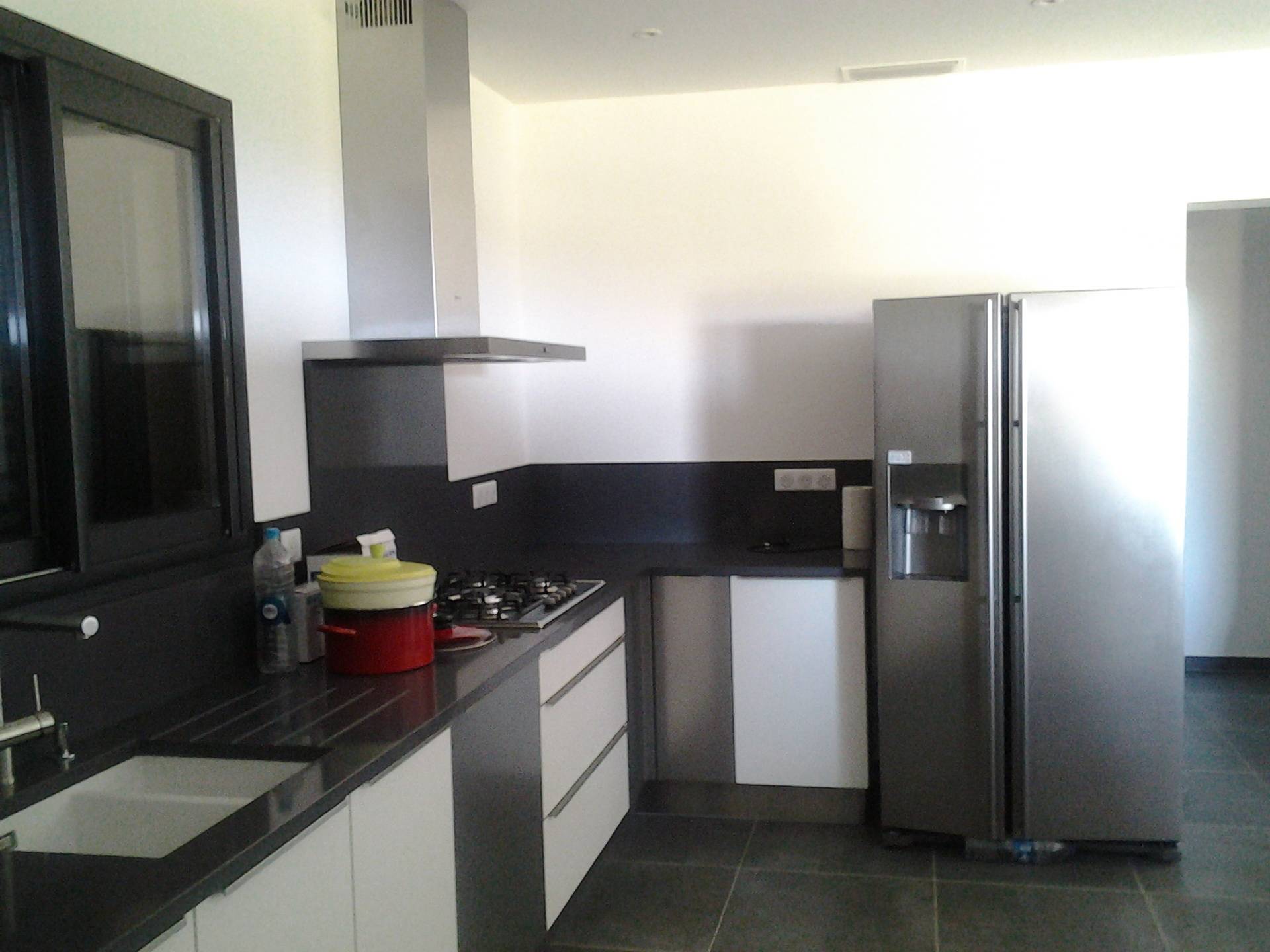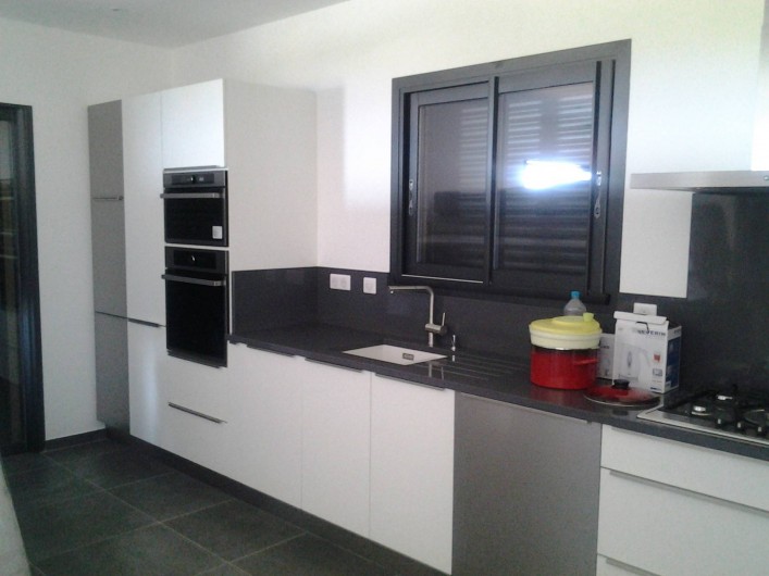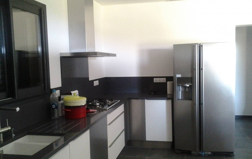 Cuisine américaine intégrée, entièrement équipée: lave vaisselle, four, micro-ondes, plaque gaz, réfrigérateur congélateur, distributeur eau fraiche glaçons, cafetière, grille-pain.