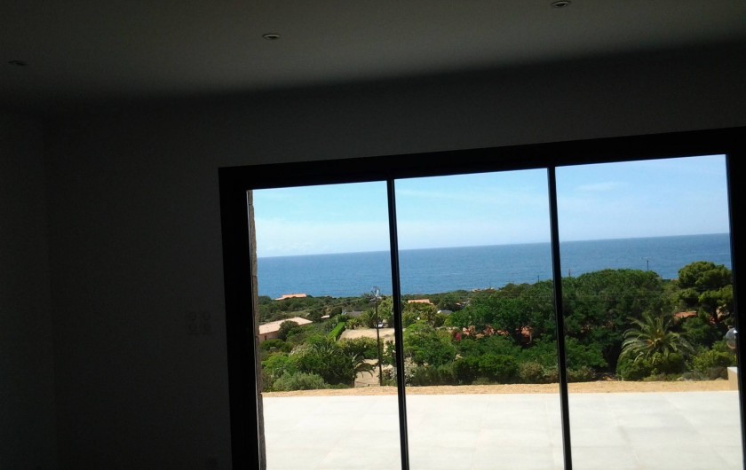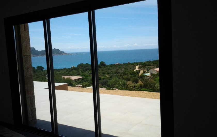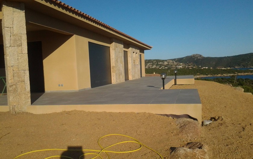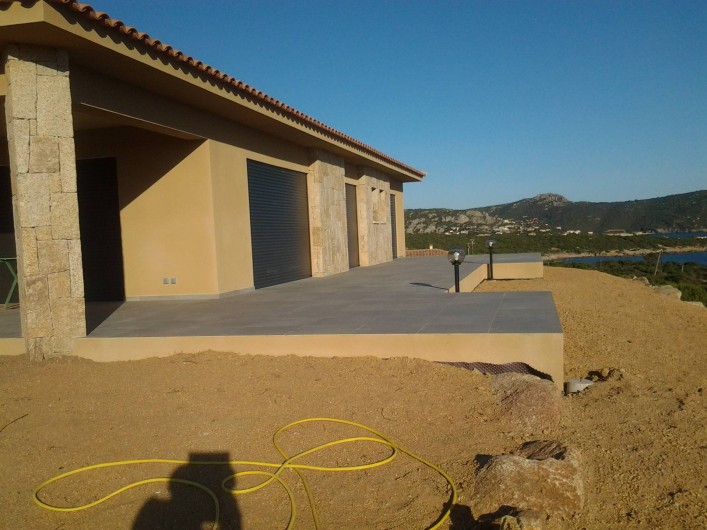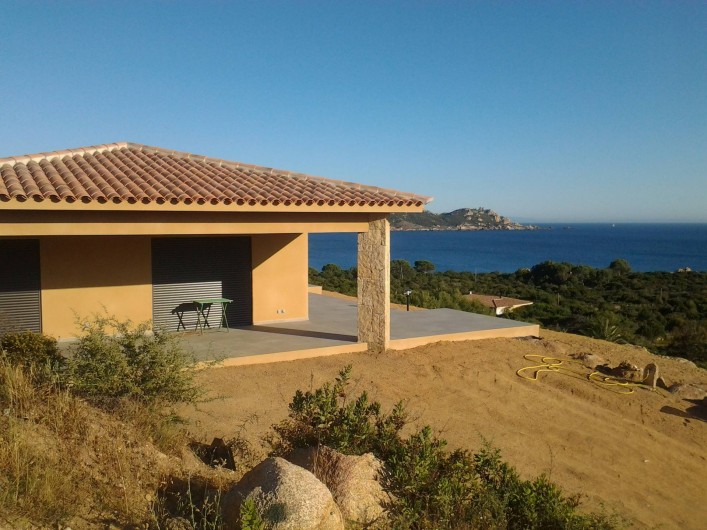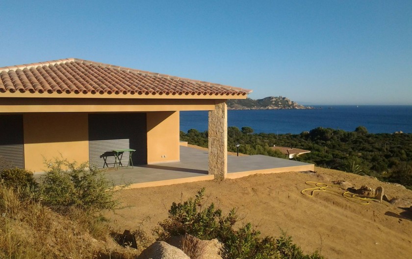 Villa édifiée en pleine campagne, sur un terrain de 3000 m2, orientée plein sud, avec vue imprenable sur la mer, à proximité - deux minutes en voiture - de la petite plage de Barcaju, accessible à partir de Sartène par la RD 48 jusqu'à Tizzano, puis par une piste en terre de 3500 mètres.