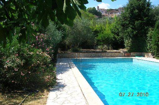 Vous vous ressourcerez au bord de la grande piscine sécurisée de 17x7 avec plongeoir, organiserez sur la terrasse couverte des barbecues tout en profitant d'une perspective magnifique sur le village et le château de Tourrettes