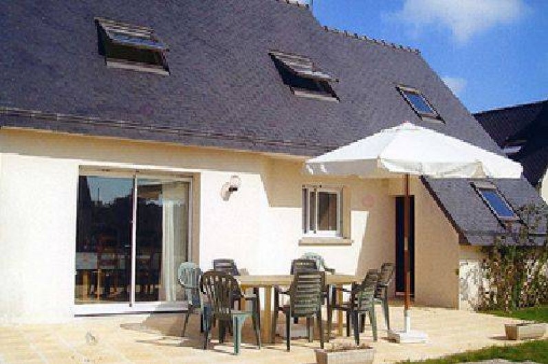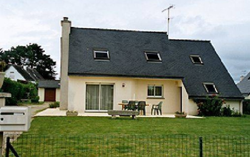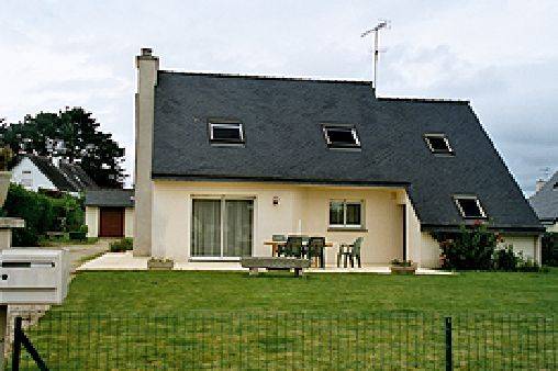 Très belle villa de vacances, contemporaine, de 110 m², située en Bretagne-sud, dans une zone résidentielle entre le bourg et la plage, joliment décorée et bien équipée.