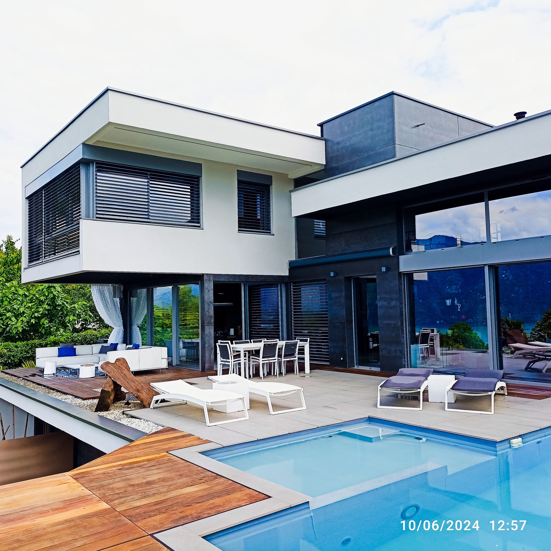 Une maison contemporaine , qui associe architecture et bien être. La série Parallèle sur Disney plus l a utilisé récemment.