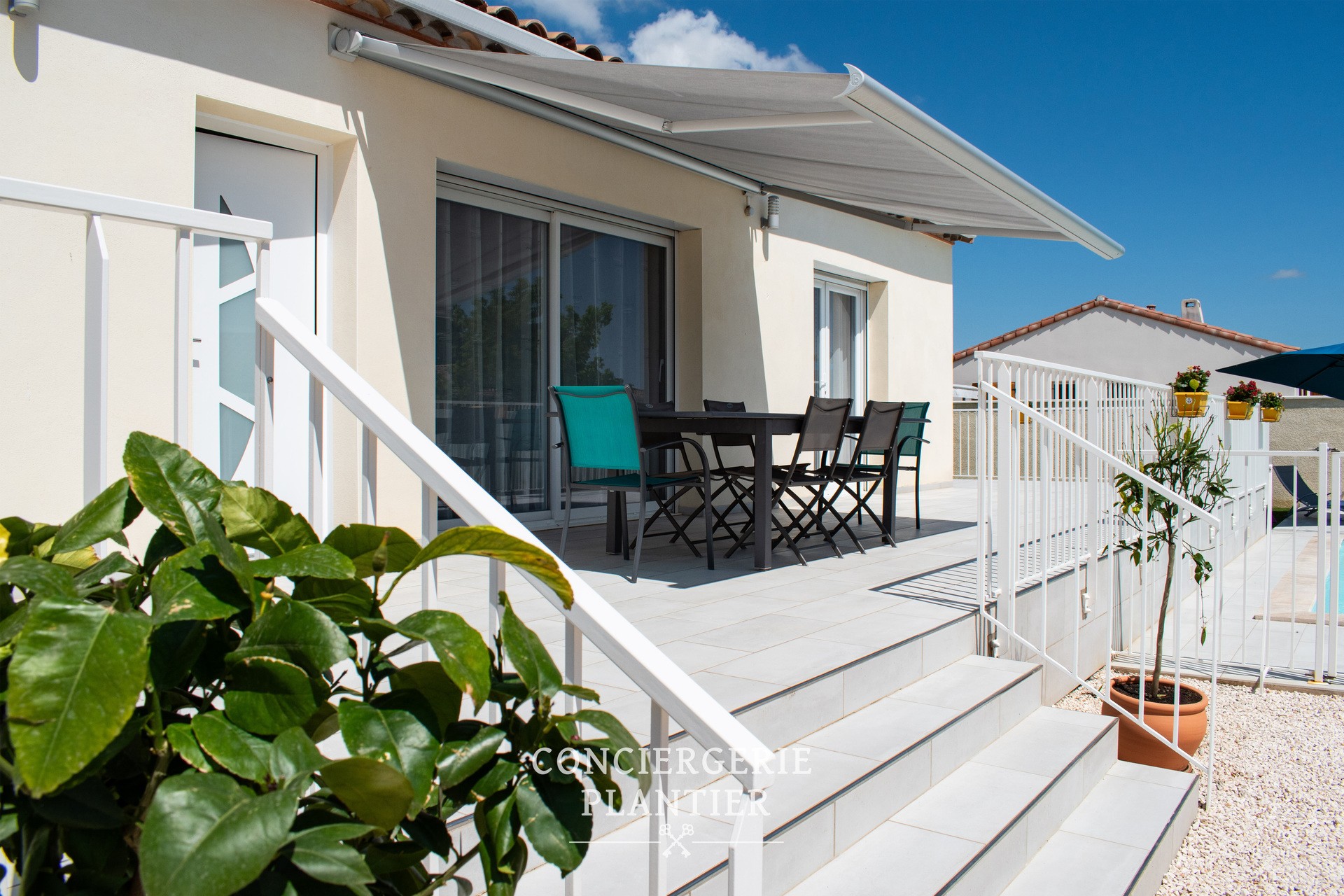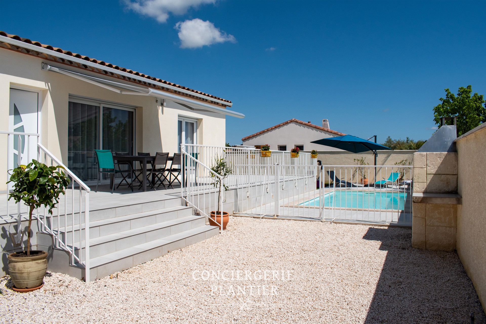 Grande terrasse pour les repas et déjeuner. Piscine chauffée et sécurisée sans aucun vis à vis. Garage, places de stationnement sur le terrain avec portail automatisé.