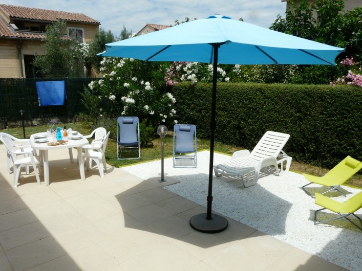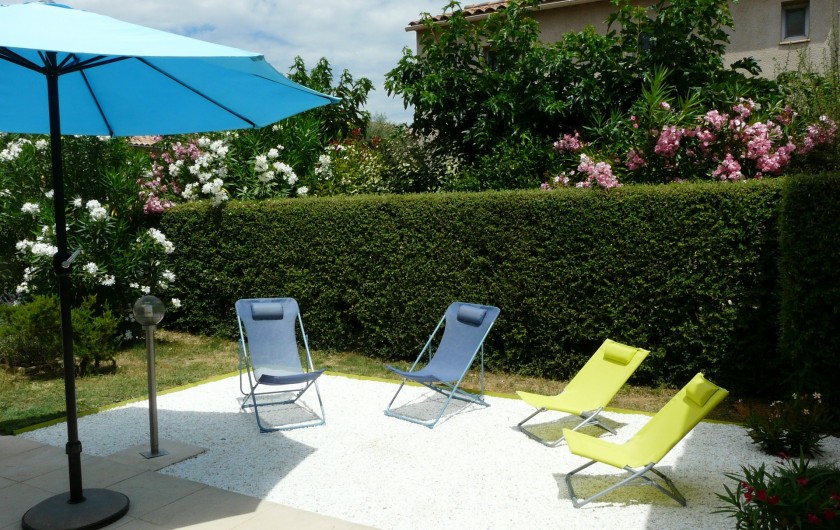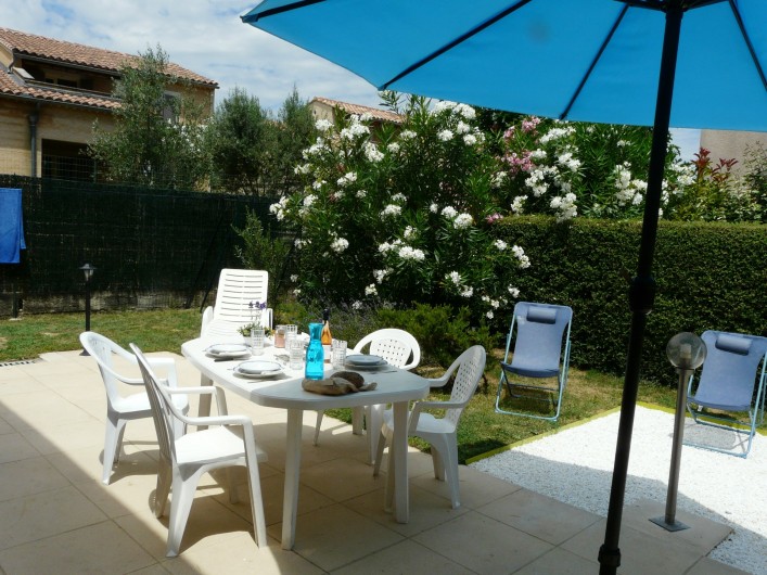 hall sécurisé avec alarme incendie et placard 1 chambre avec 1 lit 2 places et son placard et 1 lit parapluie pour bébé, 1 chambre avec 2 lit 1 place une salle de bains avec baignoire et lavabo.A votre disposition un garage pour voiture et vélo tout le matériel pour la terrasse table chaises fauteuils et bains de soleil , un barbecue électrique pour cuisiner de bonnes grillades aux herbes de Provence qui peuvent être cueillies avec parcimonie dans le jardin.La villa se trouve à 1.1km du centre ville où vous trouverez une multitude de boutiques provençales.2 sites de vestiges de ruines Romaines ,un théâtre antique, une cité médiévale. Ne pas rater le marché provençal du mardi avec produits provençaux légumes et fruits arrivés à maturité sous le soleil de Provence.Région avec de nombreux circuits de randonnée bénéficiant du climat méditerranéen très ensoleillé.