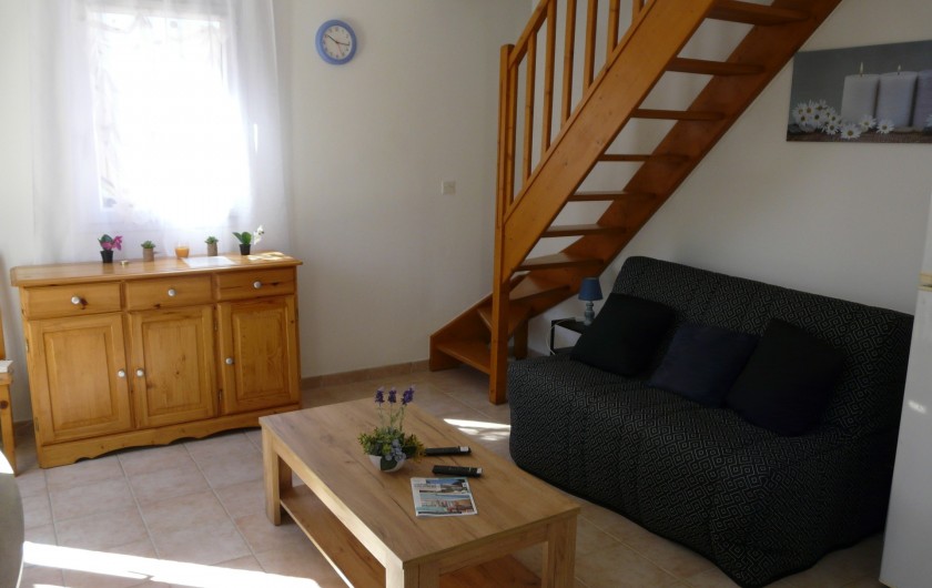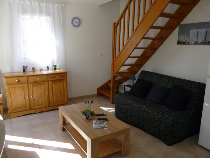 Partie séjour avec clic-clac convertible en lit de 140 à 2 places