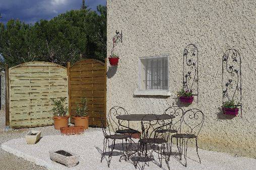 En rez-de-jardin, joli deux pièces hors du village, avec salle d'eau/WC/buanderie, avec terrasse. Séjour avec coin cuisine équipé canapé BZ 2 places 1 chambre lit 140 - chevet - une armoire Parking Accès jardin avec barbecue et coin repas ombragé; Supermarché et tous commerces à 5mn en voiture Marchés locaux - Lacs de baignade - Piscine - Cinémas - Bowling - Golfs - Centres équestres à proximité A visiter : Gorges du Verdon - Plateau de Valensole - Riez - Parc du Lubéron - etc.. Possibilité fourniture linge de maison avec supplément de 50 Eur .