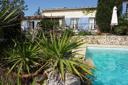 Location d'une villa de charme au cœur de la Provence à 5 km du centre historique d'Avignon. Villa tout confort et spacieuse de 150 m2 comprenant: 3 chambres, un grand séjour avec mezzanine, une cuisine équipée, salle de bain et salle d'eau, 2 wc, un cellier. Villa de caractère meublée avec goût; grande piscine de forme libre; grand jardin arboré composé de garrigue et de verdure. La villa s'ouvre sur deux grandes terrasses dont une avec pergola. Mobilier de jardin ( parasol, bain de soleil, tables de jardin). Internet. Télévision, DVD.